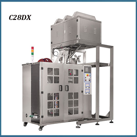 C28DX pyramid tea bag packing machine with outer envelope is suitable for both inner pyramid bag with outer envelope, and inner flat bag with outer envelope, for packing products from mall granules to big granules, such as loose leaf tea, herbal tea, health care tea, TieGuanYin, LongJing, DaMaoFeng, Rose Tea, Ginseng, etc.